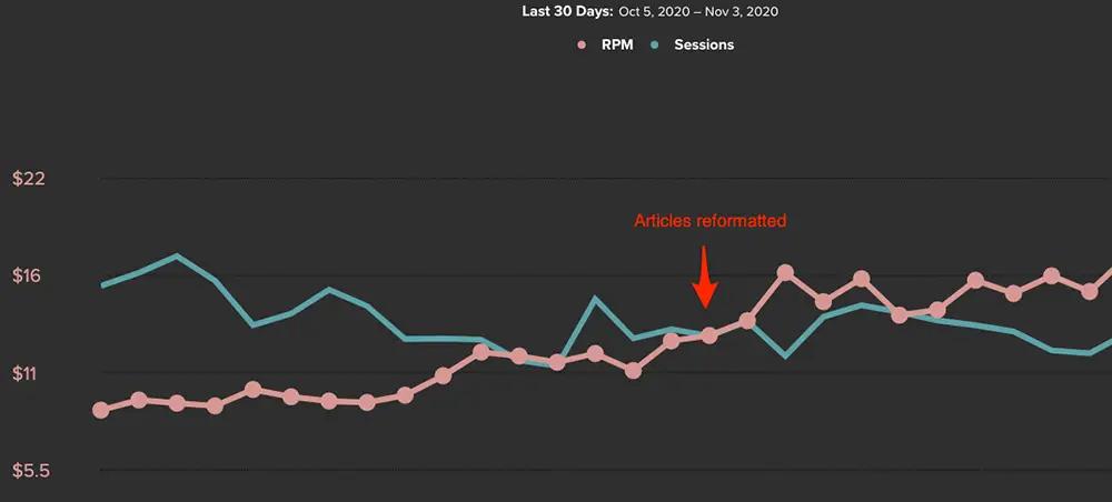 See the screenshot from our advertisement RPMs after adding more images to the top 10 high-traffic articles. The RPMs increased from $11 to $16 overnight. This is an easy win!
