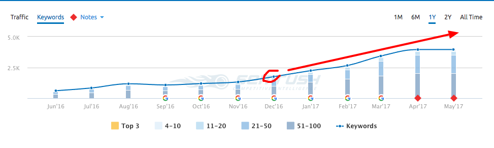 As you can see above (figure A), these three user experience metrics were all improved over the course of the time period above. There were likely other changes during this time set; however, it is important to recognize the correlation this site had with improved UX metrics and increased organic search traffic. See how both are positively associated.