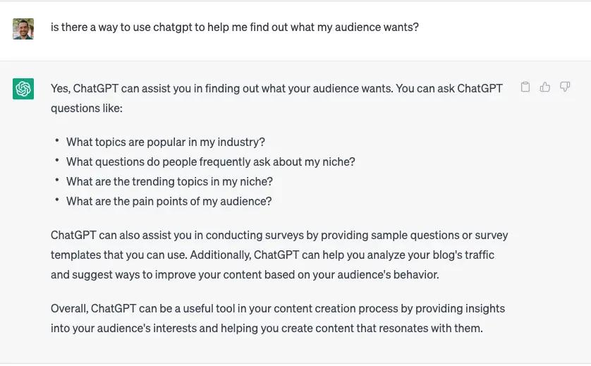Seems like no relevant article about content nowadays can afford to skip over ChatGPT’s abilities and utilities. This case is no different; simply asking ChatGPT for the answers can give you viable data to make content decisions: