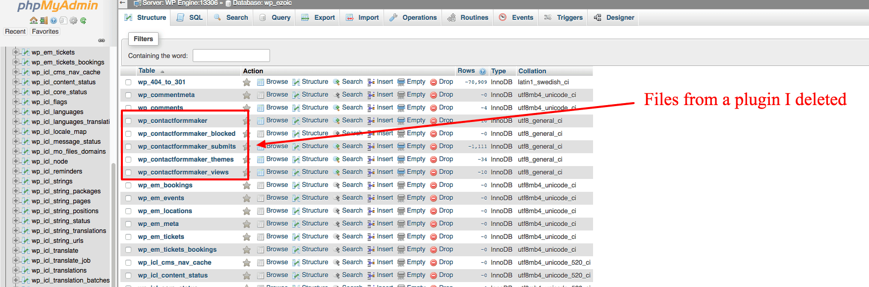 This will delete those tables in your database and help your site stay nice and lean. Additionally, if you’ve deleted a lot of pages or media files that have been archived, these types of things take up space in your database. You can follow the same deletion process outlined in the above paragraphs.