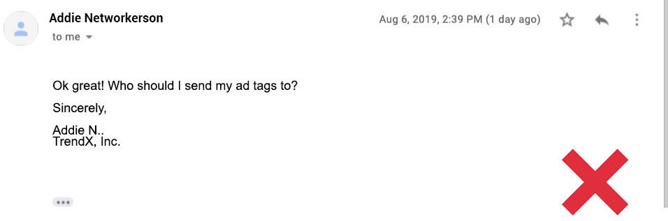 _**Always**_ be careful with putting ad tags on your site. Once the script is on your site, the ad network has the potential to manipulate it, and the outcome could affect the prices of all your other ads. One of the biggest ad network scams I’m seeing lately that’s newer is ad networks that are pretending to be direct advertisers. An example of this might look like: