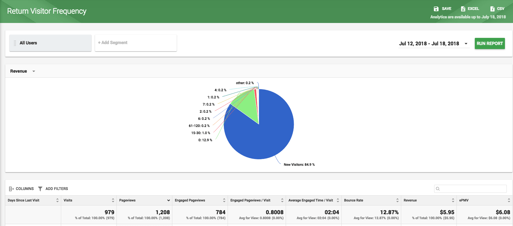 I could also look at something like newsletter subscribes and other details that may lead me to believe I could get these visitors back again soon — allowing me to profit over the long term from this aud