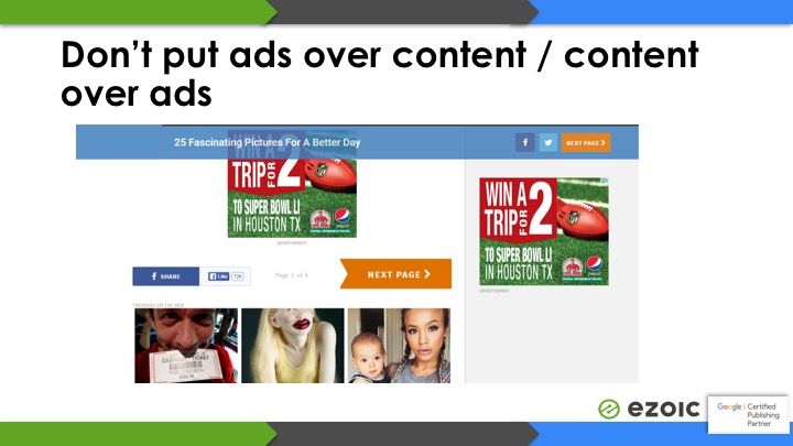Avoid putting ads over content