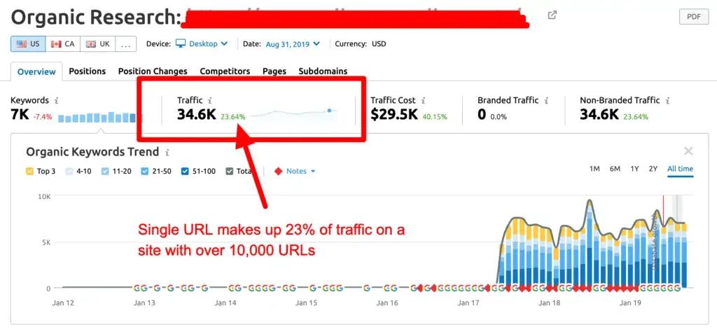 In fact, one of the biggest risks I often see is publishers that don’t realize that the vast majority of their traffic and revenue is coming from a single URL, keyword, or article.