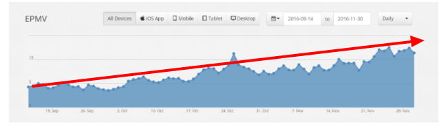 The best metric for seeing if you are actually getting the best ad rates — or just earning more per visitor — is by using EPMV (earnings per mille visitors). This is really simple, you **measure your total earnings over a period of time and then divide that per thousand website visitors**.