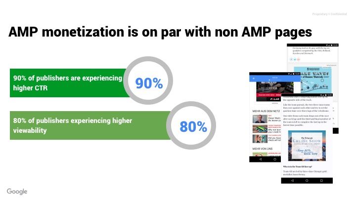 Since **Google is only looking at Google revenue** (AdSense & Ad Exchange), they say they are seeing increases in publisher revenue from AMP. They also claim increases in CTR and other important revenue metrics.