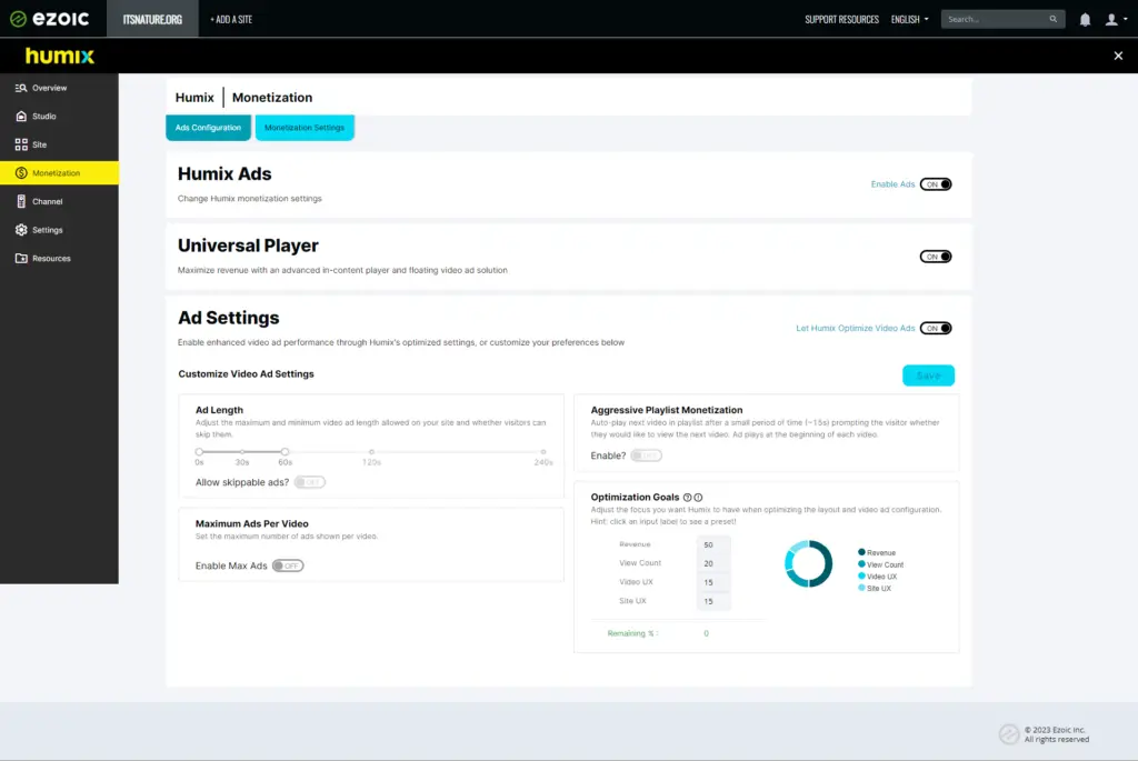 **Humix Users:** If you’re a Humix user, you can activate the Universal Player in the Monetization section of your Humix dashboard. Once enabled, the Universal player will replace the original player, maintaining the same location and all of your video content settings. Whether you’ve chosen to display your own videos, network videos, or a combination of both, you can rest assured that nothing will be changed.