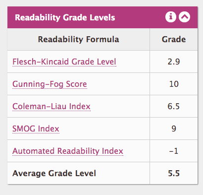 There’s a complicated mathematical formula that’s built around total words divided by the total number of sentences and total syllables divided by the total number of words.