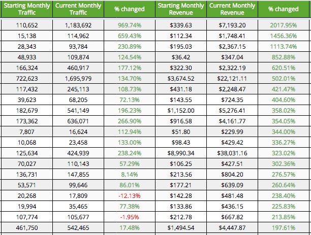 In this case, these sites didn’t just increase their traffic. They actually did improve their display ad revenue far beyond the improvements they saw in their average traffic. In fact, the average improvements in revenue were more than double the average improvements they saw in traffic.