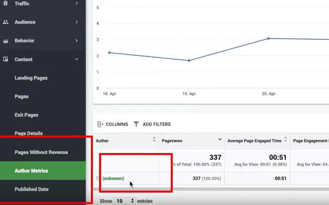 This gives you a good idea which authors produce your best content, what their best categories are, and the landing pages they’ve produced.