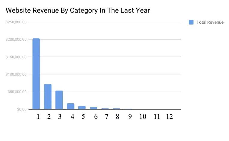 If you use categories already on your site, this will typically provide some massive clarity on which ones are driving most of your revenue. In the example above, you can see that this site has one category driving the vast majority of the revenue (and they have over (10,000 pages).